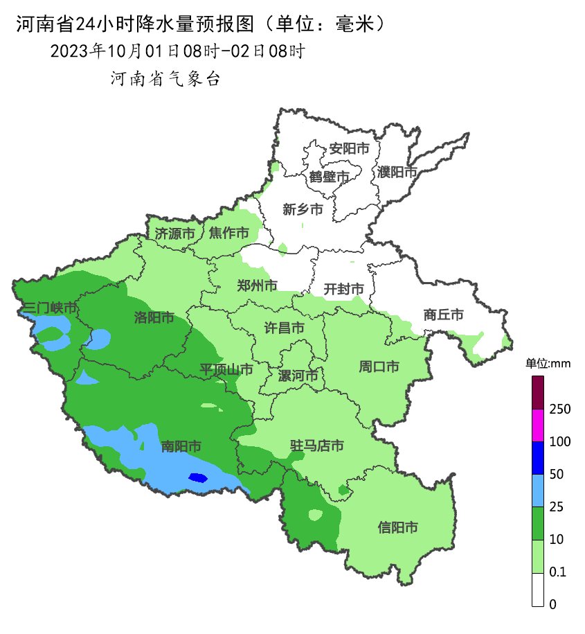来日白昼,西部、南部有小雨,其中三门峡、洛阳西部、南阳部分县市有中雨;